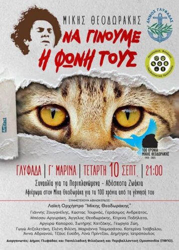 Όλοι μαζί για τα Ζώα! Ως επίτιμα μέλη της Πανελλαδικής Φιλοζωικής και Περιβαλλοντικής Ομοσπονδίας, σας προσκαλούμε στη μεγάλη συναυλία της